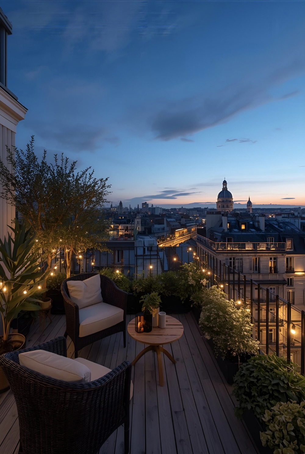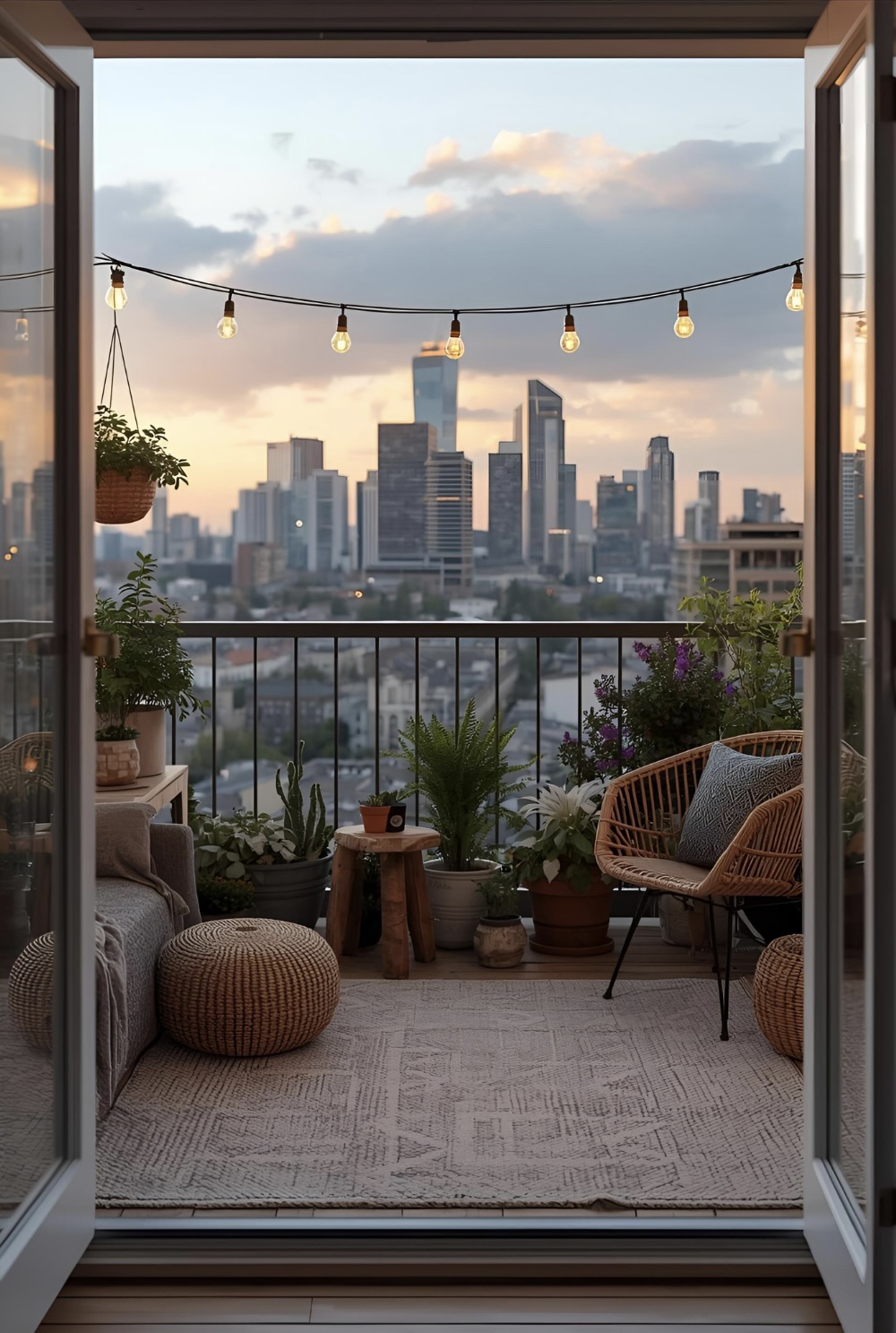 Pro Tip: Layer your lighting! Combine string lights with lanterns or solar-powered LED candles to create depth and a soft, inviting glow. On small balconies, drape them along the railing or overhead for a dreamy “indoor-outdoor” feel.
